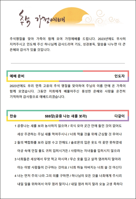 1. 2023년 추석 가정예배 순서지 (다운로드)